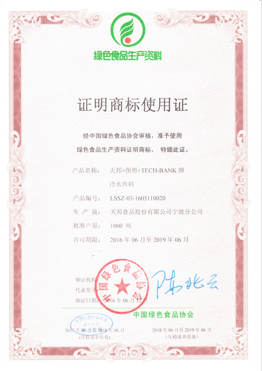 2018年02月24日綠色認(rèn)證-冷水魚(yú)料